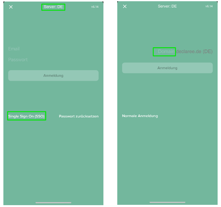 Geben Sie Ihren Domain Namen in das Domain Feld ein und klicken Sie auf Login. Sie werden nun auf unsere Seite weitergeleitet, wo Sie sich anmelden und in der Declaree-Applikation starten können.