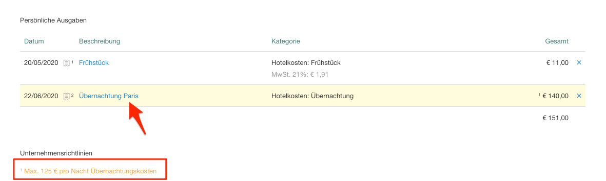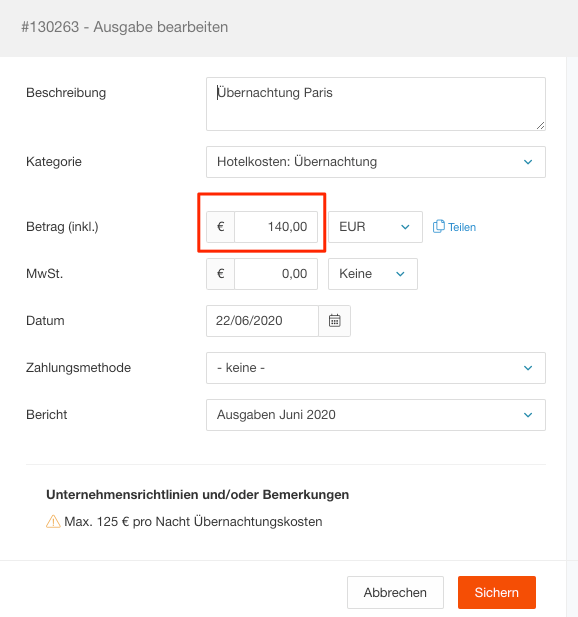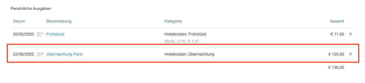 Um dies zu tun, wählen Sie einfach die Ausgabe aus dem Bericht aus in dem Sie auf die Beschreibung klicken. Anschließend öffnet sich ein Fenster mit allen Details, die Sie dann abändern können und die Ausgaben dann wieder speichern können.