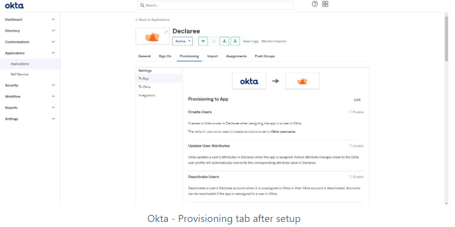 👉 Note: We recommend disabling import from Declaree to Okta, as all user management should occur from Okta.