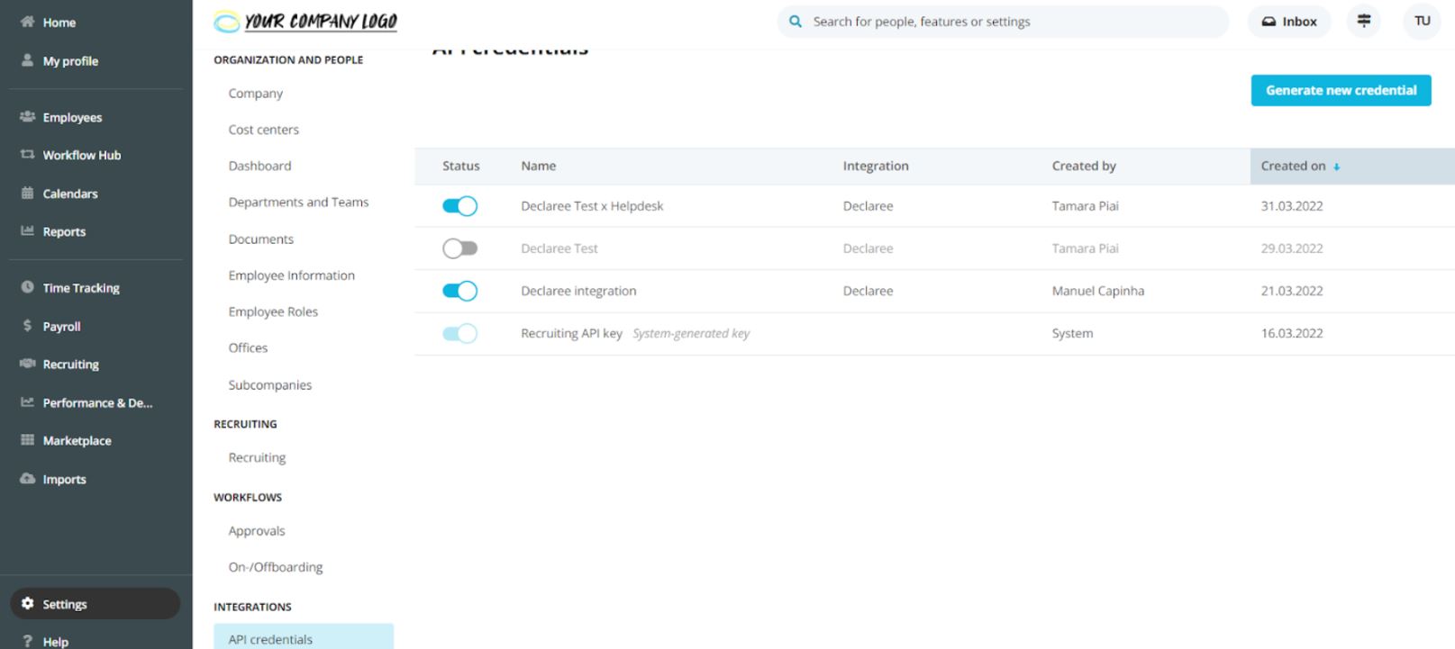Once you connect Personio to Declaree: