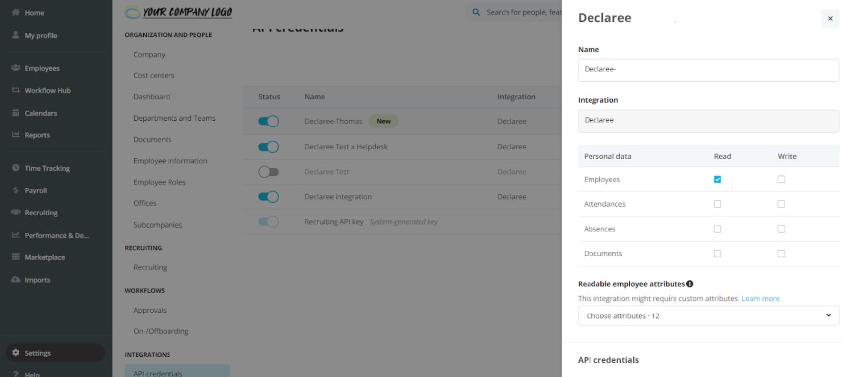 In Personio, go to your Declaree Integration Settings.