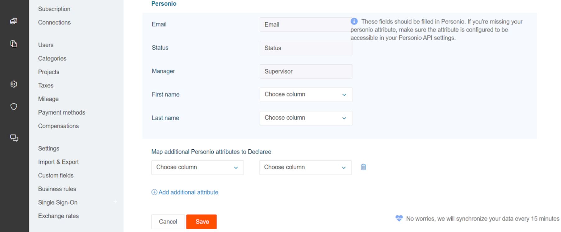 Want to sync additional data like cost centers or departments? You can map custom fields between Personio and Declaree.