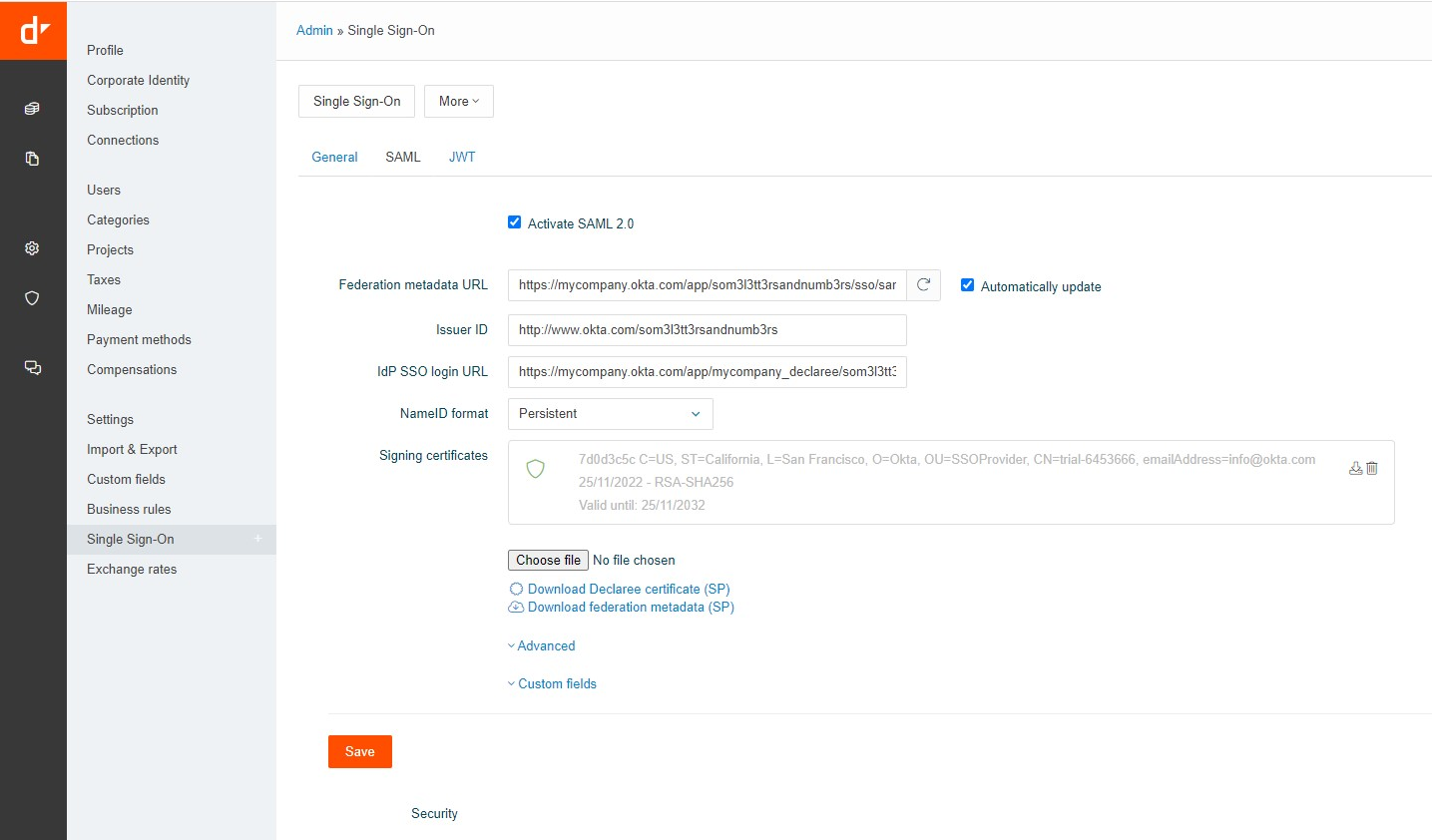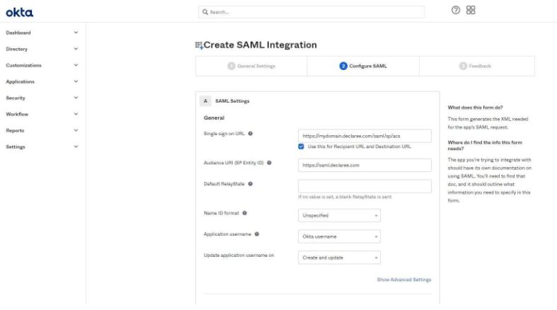 Step 3: Fill in the Declaree SSO SAML Form