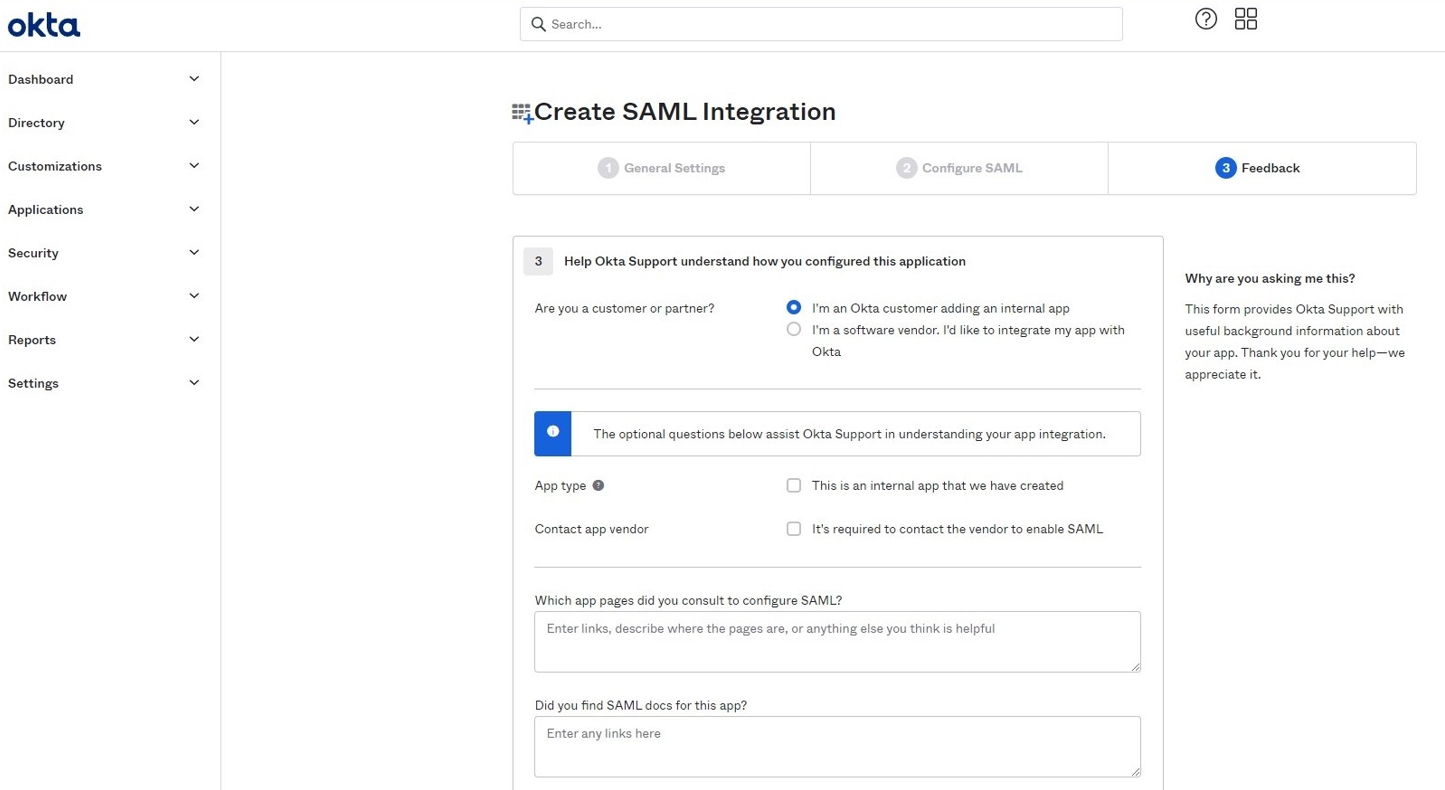 Select I’m an Okta customer adding an internal app.