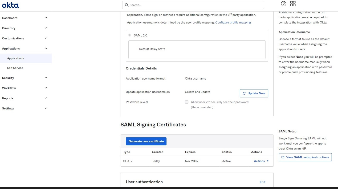 Signing Certificate: download the certificate from Okta and upload it here.