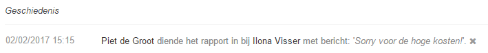 Eventuele berichten die je hebt toegevoegd worden opgeslagen in de rapportgeschiedenis.