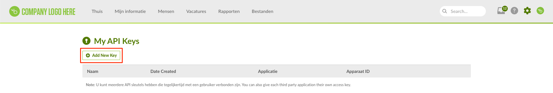 1) Klik op je profiel foto in de rechter bovenzijde van het scherm >> Kies ''API Sleutels''