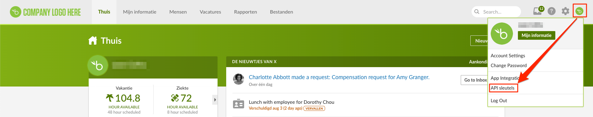 De volgende informatie is benodigd vanuit BambooHR: